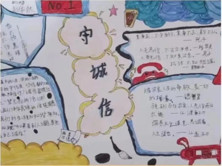 活动通过讲述诚信小故事、制作诚信手抄报、摘抄诚信名言警句等形式,让孩子们体会到诚实守信,既是中华民族的传统美德,也是现代文明的重要基础和标志,更是当代学生塑造健康人格,实现人生价值的道德基石。